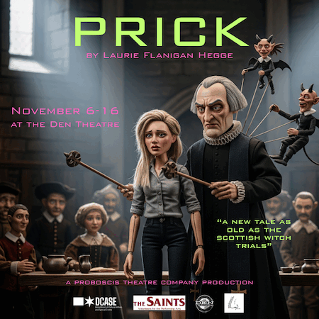 I am so grateful to director Jeff Mills and all the amazing Proboscis artists, onstage and off, who have embraced this play and Madeline Helling’s gorgeous puppets with such fierceness and vulnerability. PRICK premiered at the 2023 Edinburgh Fringe Festival, and has since traveled to London, New Orleans, and New Zealand. It’s a special thrill to have its first professional American production in my home town, Chicago.